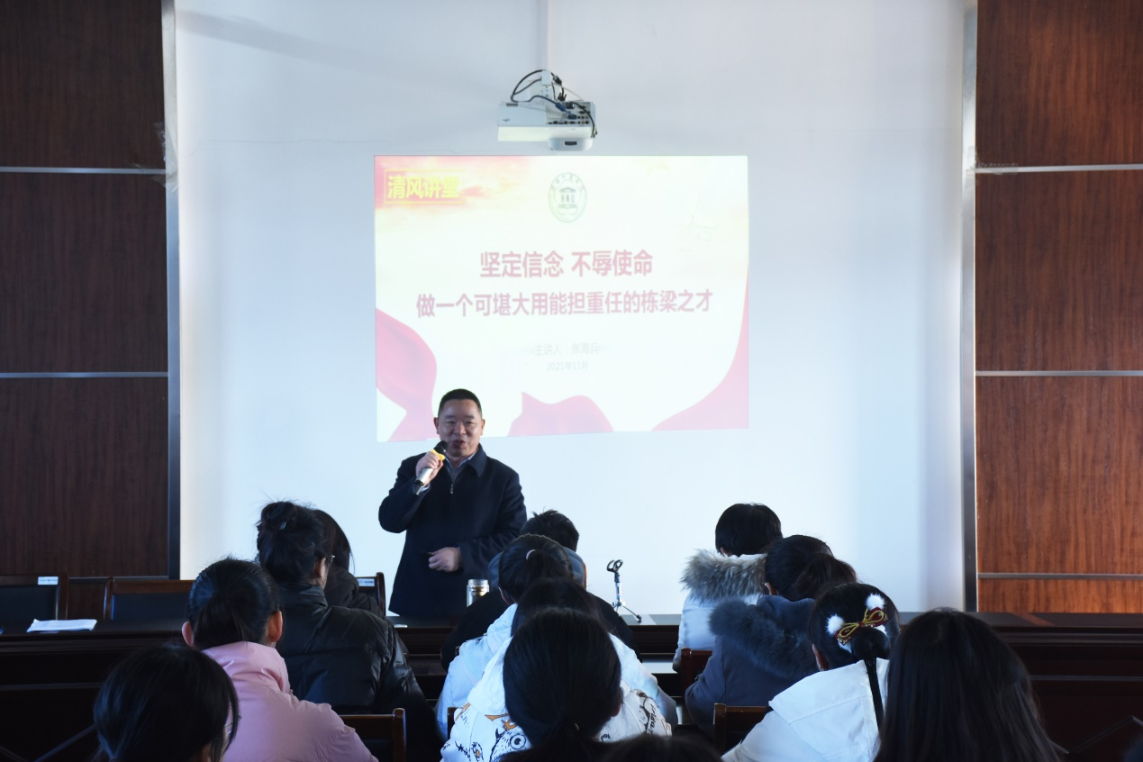 淮师新闻网11月26日电(记者 魏笑 吴雪纯 肖妍梅)11月24日下午,教科院举办学生党员培训专题讲座。校纪委办公室主任张海兵应邀作题为“坚定信念,不辱使命,做一个可堪大用能担重任的栋梁之才”的专题报告。本次讲座由教科院党委副书记滕祥主持。