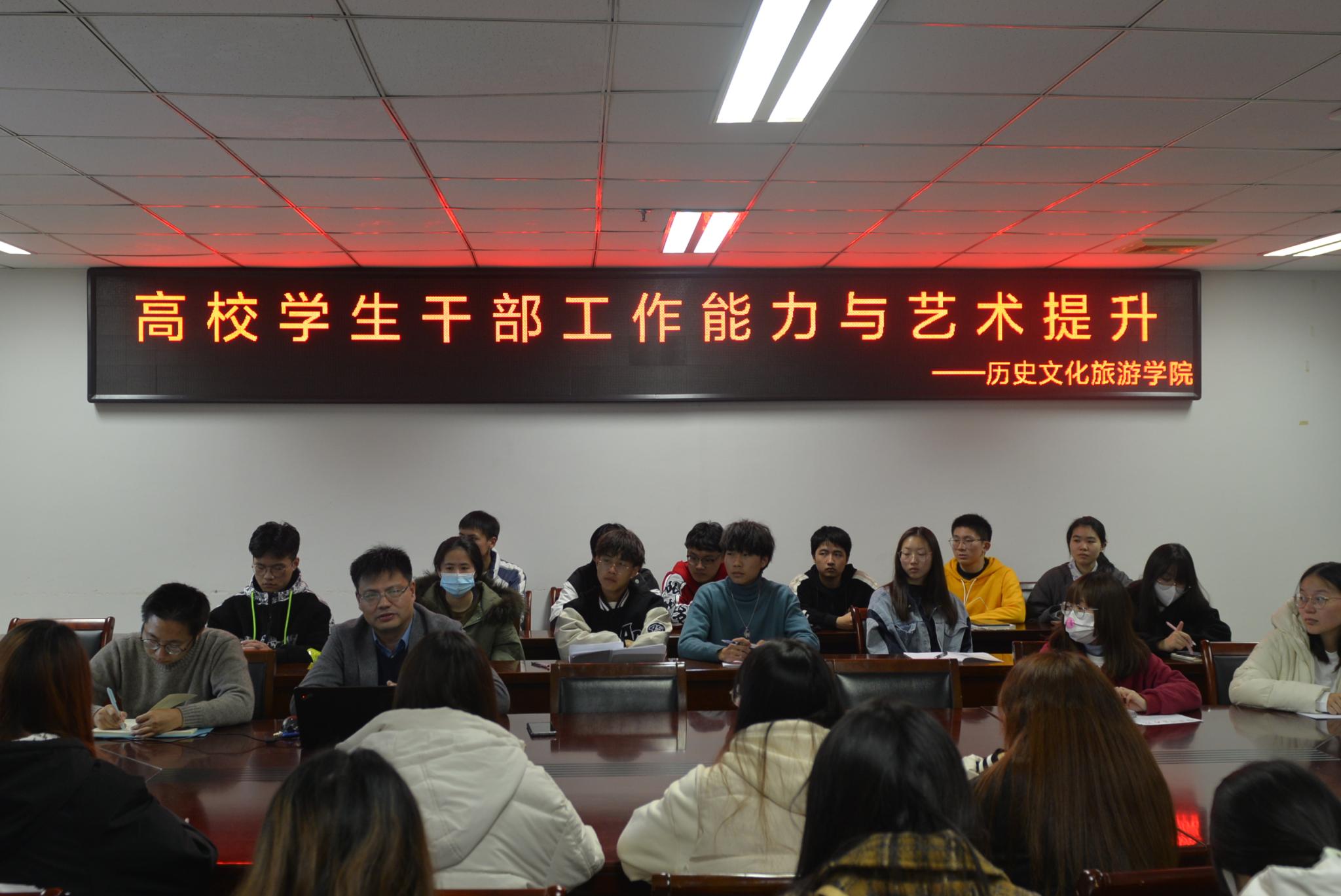 淮师新闻网11月26日电(记者 纪群)为进一步加强学生干部队伍建设,提升学生干部的综合素养及工作能力,历史学院于11月8日至23日开展了系列学生干部能力提升培训交流活动,通过多种培训形式给予同学们良好的体验与收获,同时为学院第六届班级建设月活动的顺利开展奠定了坚实基础。