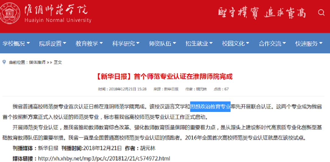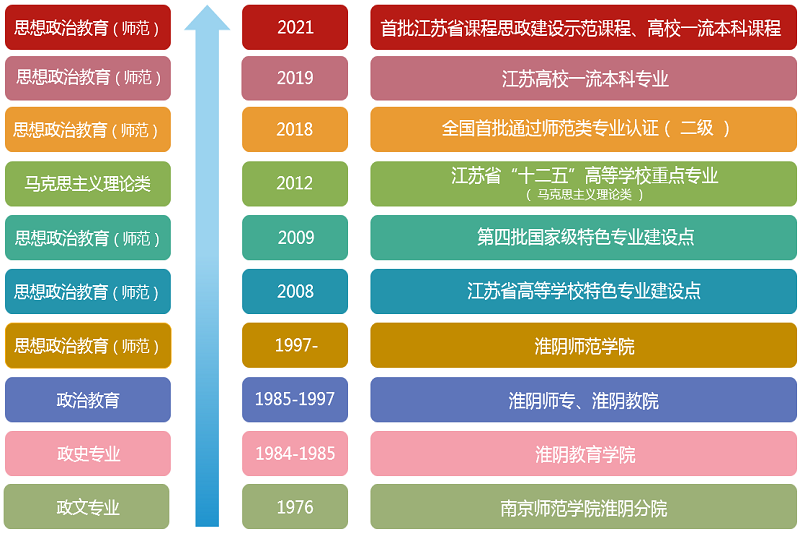 坚持问题导向,着力深化专业建设机制改革,构建持续改进的人才培养机制,汇聚专业发展内生动力,促进学生知识、能力、素质全面协调发展,形成富有特色的卓越思政人才培养模式。2009年获国家特色专业;2017年,综合排名居全国师范类高校第18位、师范学院类高校第一(并列);2018年,省内首批通过师范专业二级认证;2019年,获批江苏省特色专业;2021年,排名全国马克思主义理论类应用型一流专业第2位。建设经验被全国50多个思政专业借鉴。