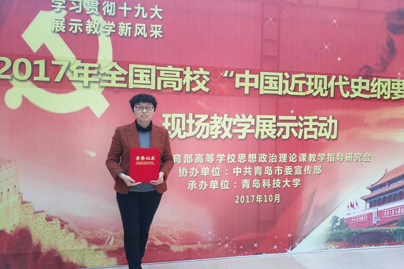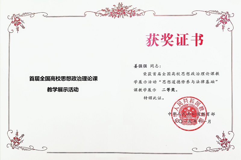 图为姜强强老师获全国高校思政课教学展示二等奖。