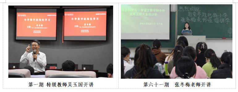 4.邀请地方小学名校长、名教师开设“教育科学学院基础教育名师讲坛”,帮助学生树立教育信念,培养职业情感,提升教育能力。