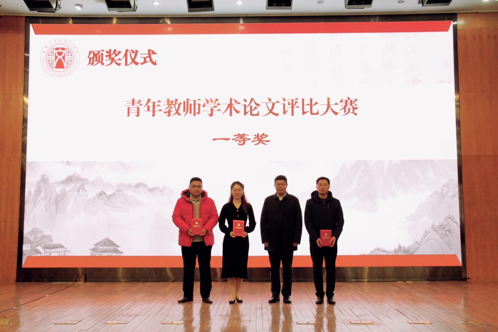 图为与会领导为青年教师学术论文一等奖获得者颁奖。 记者 王禹潮 摄