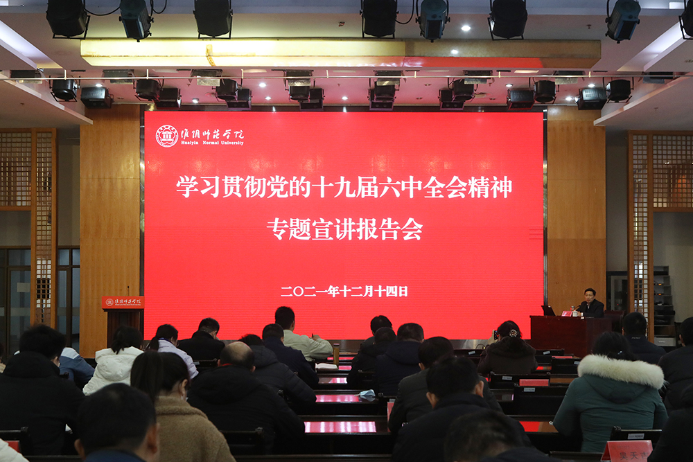 淮师新闻网12月14日电(记者 贾夏)12月14日下午,永利yl23411no1机关党委学习贯彻党的十九届六中全会精神宣讲报告会在长江路校区图书馆多功能厅举行。省委、市委宣讲团成员、副校长韩同友作宣讲报告,机关党委书记王江明主持报告会,机关百余名党员及部分研究生党员现场聆听了报告。