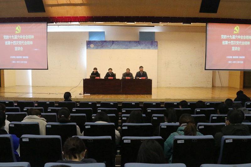 图为物电、数统、计科学院举办党的十九届六中全会精神宣讲报告会。记者 郭灿灿 摄