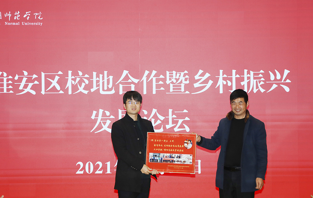 会上,罗松源转交了中共淮安区委组织部向淮阴师院赠送的锦旗。陶舍村向王刚颁发了“荣誉村主任”聘书,赠送了留言册和纪念摆台。