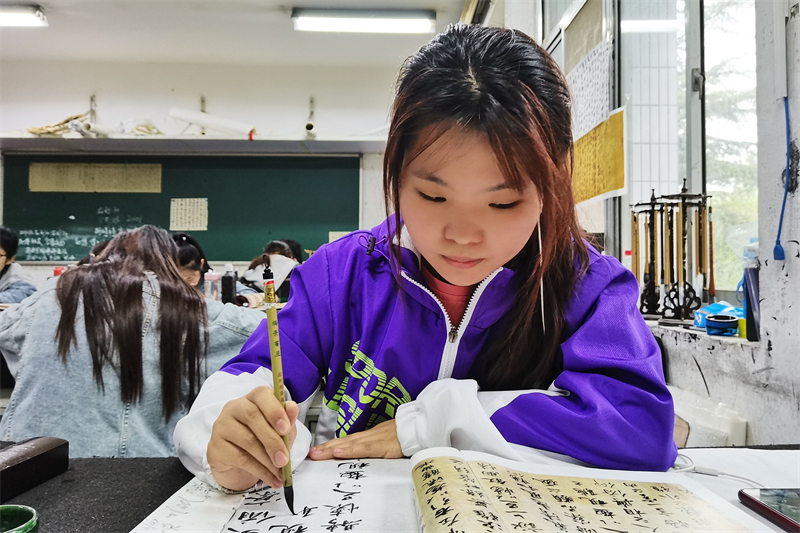 图为美术学院开展“书百年党史,写恩来精神”主题书法创作活动