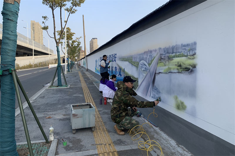 图为美术学院党员教师带领学生开展清江浦区延安路文化墙绘的绘制