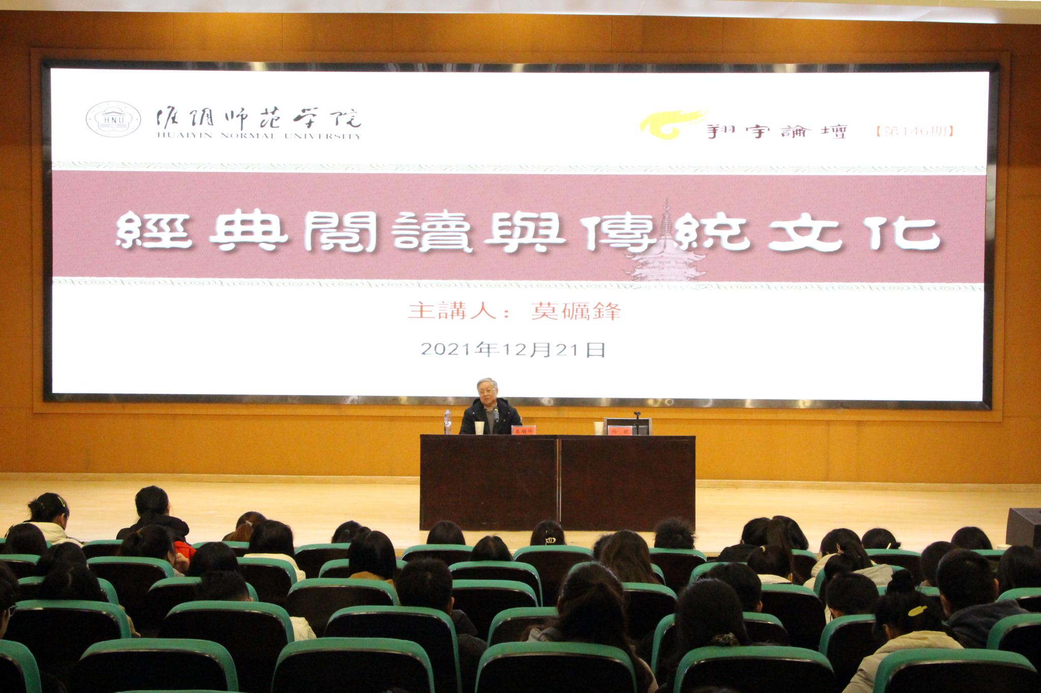 淮师新闻网电12月24日电(记者 葛彤彤)12月21日下午,南京大学文学院教授、博士生导师、南京大学中国诗学研究中心主任、梅庵书院首任院长莫砺锋做客文学院第147期翔宇论坛,作题为“经典阅读与传统文化”的讲座。文学院副院长杨颖主持论坛,文学院部分19级学生聆听讲座。