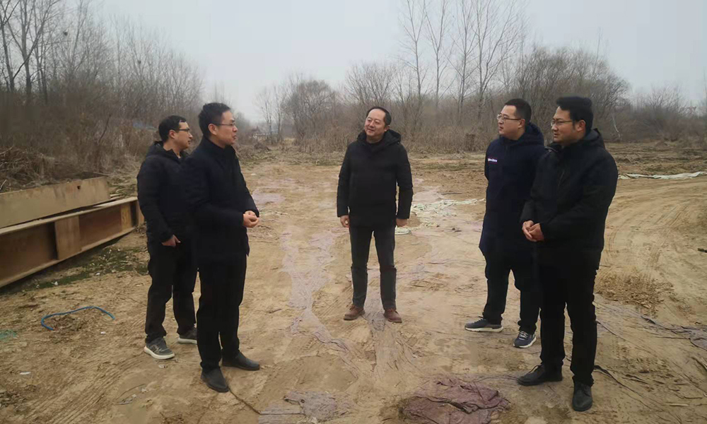 图为省公建中心来校踏勘新建生化楼项目现场。记者 王辉 摄