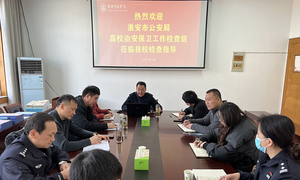 淮师新闻网3月3日电(记者 宫兆辉)为认真贯彻落实中央、省、市关于加强高校安全稳定工作的部署,根据《江苏省公安厅关于对春季开学期间高校治安保卫工作开展检查的通知》要求,3月2日,淮安市公安局内保支队长曹建兵、政委周润之,淮阴区公安分局副局长吴卫一行来校检查安全稳定工作。永利yl23411no1保卫处处长徐拥军、后勤服务集团总经理熊加兵、生命科学学院院长赵祥祥及相关学院、部门负责人陪同检查。