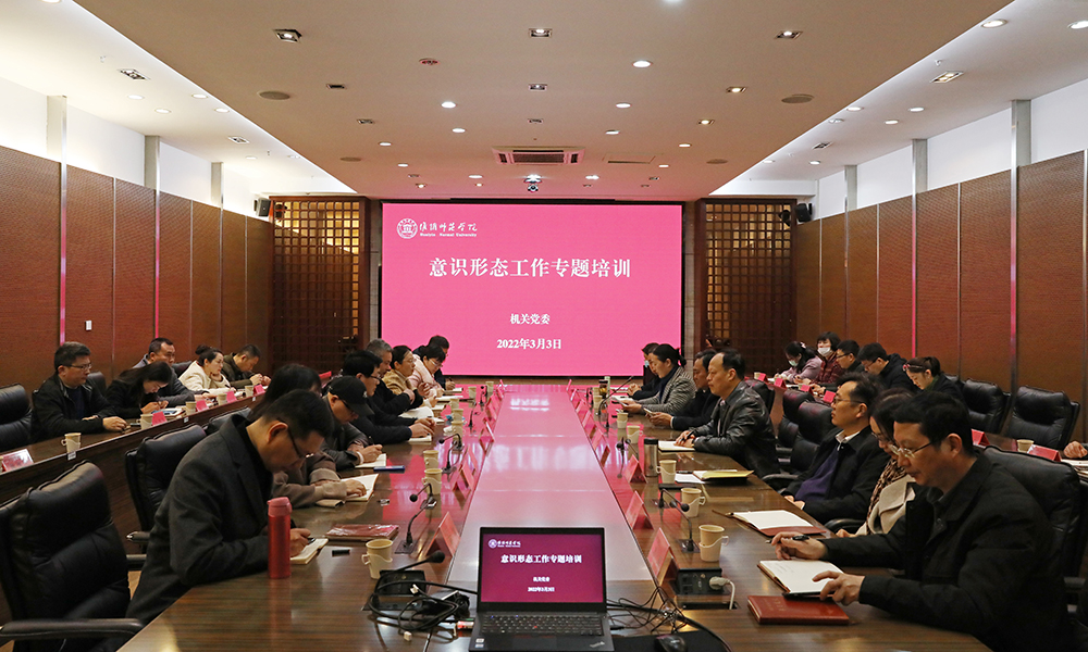 校机关党委书记王江明主持培训会,并强调2022 年是迎接学习贯彻党的二十大的一年,机关党员干部要进一步深入学习领会习近平总书记关于意识形态工作的重要论述,不断强化党的创新理论武装,始终绷紧意识形态斗争这根弦,从“提升政治站位,增强政治自觉;紧绷思想之弦,压实主体责任;强化责任担当,增强履职能力”三个方面,不断提高政治敏锐性、政治鉴别力,牢牢把握正确的政治方向、舆论导向和价值取向。同时,围绕高校机关和部门工作特点,找准立足点,创新工作方法,补齐工作短板,狠抓意识形态领域各项工作,为迎接党的二十大胜利召开提供有力的舆论支持、精神动力和思想保证。