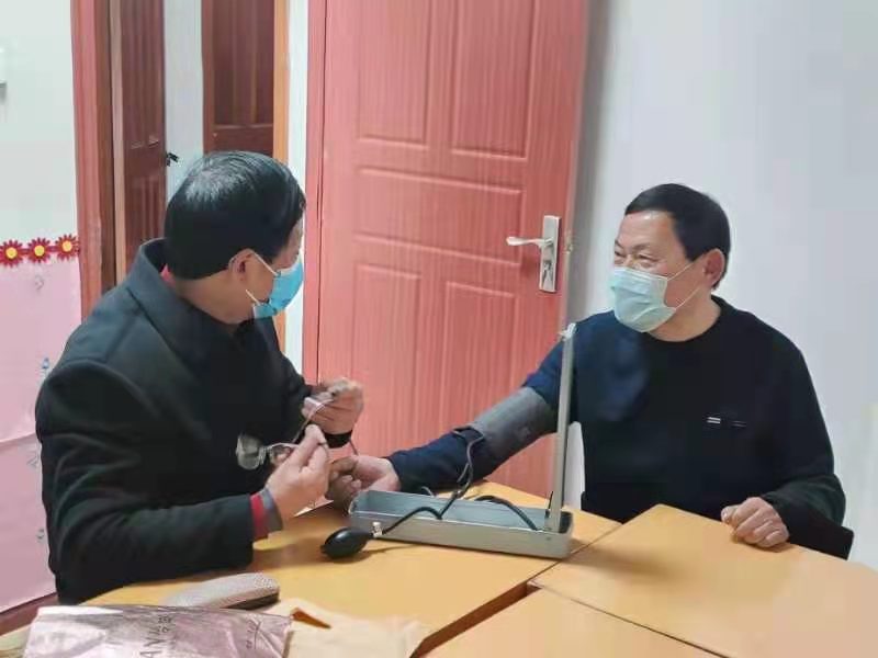 猜谜间隙,永利yl23411no1退休主任医师李浩友为大家测量血压,普及疫情防控常识,提供健康咨询服务。