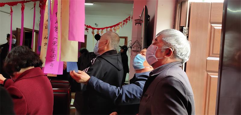 专题报告结束后,进行了“党建知识”“喜迎二十大”“迎壬寅庆冬奥”“入党誓词”等四个专题猜灯谜活动。永利yl23411no1退休党员曹成荣现场分析谜面,在传授大家猜灯谜的技巧中普及党史知识,活动现场气氛热烈活跃,营造了喜迎二十大的浓厚氛围。