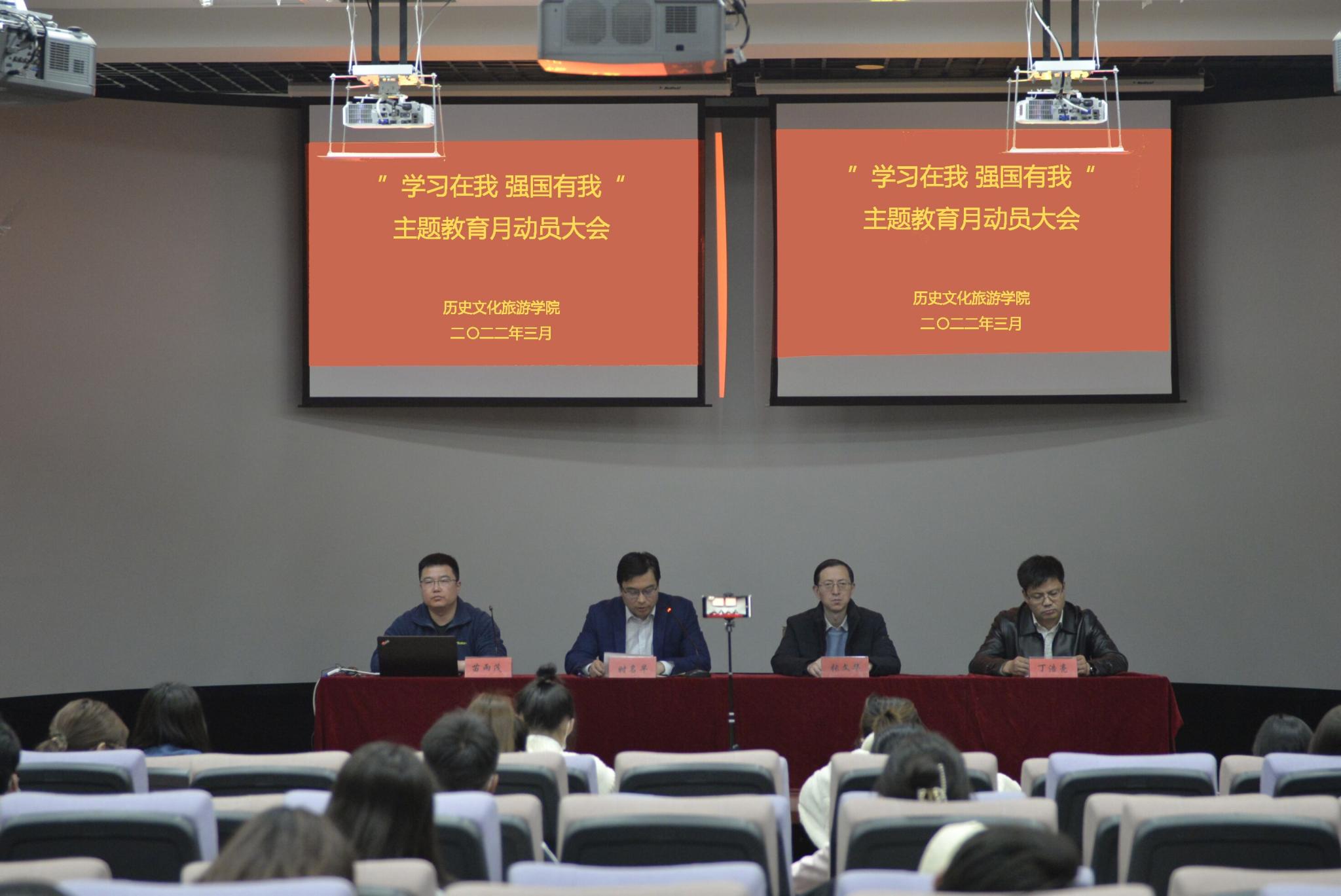 淮师新闻网3月18日电(记者 王彧)3月16日下午,历史文化旅游学院在弘文阶201召开了“学习在我 强国有我”主题教育月动员大会。历史文化旅游学院党委书记时名早、党委副书记丁浩亮、副院长张文华、学工办主任苗雨茂以及各班班长、团支部书记现场参加会议。班主任和各班同学通过线上参会。