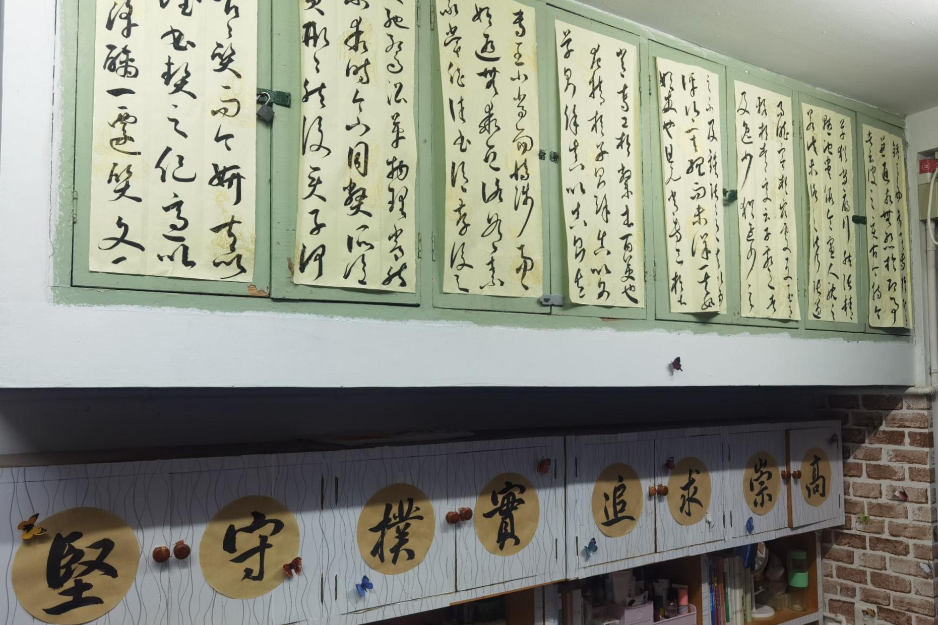 尚艺先行,结合专业特长展风采。学院积极探索思政育人与专业特色融合新思路,重视宿舍文化内涵建设。组织学生开展公寓墙绘和书法创作,美化公寓环境;开展“爱寝行动”宿舍文明公约创意设计比赛,“寓”你携手,一见“寝”心宿舍装饰设计比赛,鼓励学生学以致用,将手工编织,书法,海报设计等专业技能用来美化宿舍环境,展示自己的专业特长。
