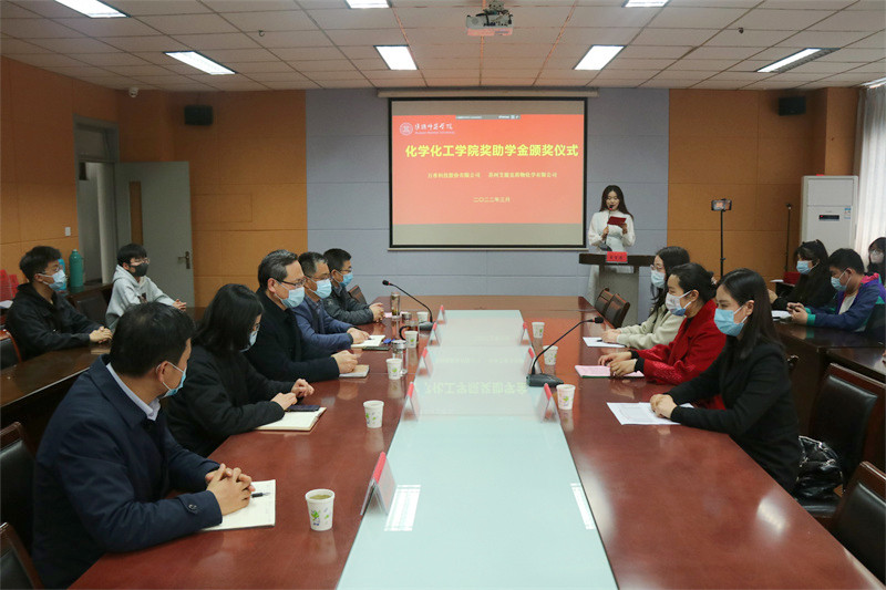 淮师新闻网4月4日电(记者 赵文康 陈舒雨 郝子甲)近日,化学化工学院举办“万香奖助学金”和“艾缇克奖助学金”颁奖仪式。万香科技集团淮安区域人力资源总监陈霞、总裁办副主任钱亚楠、人事主管吴婷婷作为企业代表参加仪式。学院党委书记骆仁林、院长周守勇、党委副书记姜洁、新能源系主任唐果东、教授安礼涛出席颁奖仪式。仪式采取线下和线上相结合方式进行,学生获奖代表参加现场颁奖仪式,各班级在教室观看直播。