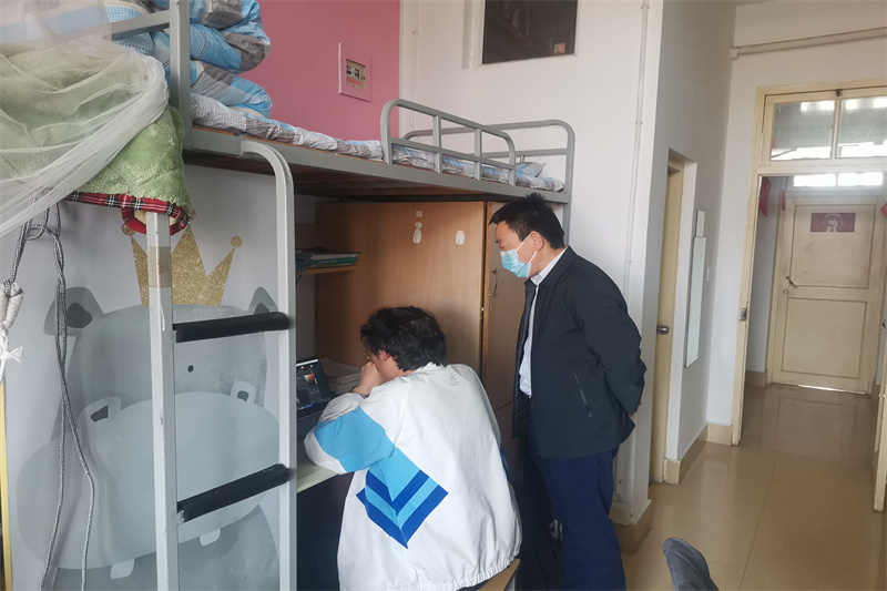 在每一个宿舍,学院党政班子成员与学生就当前线上教学、疫情防控常态化的学习生活、学风建设等问题进行交流,当面传达全省、学校当前关于做好疫情防控的相关要求,并听取大家的意见和建议。