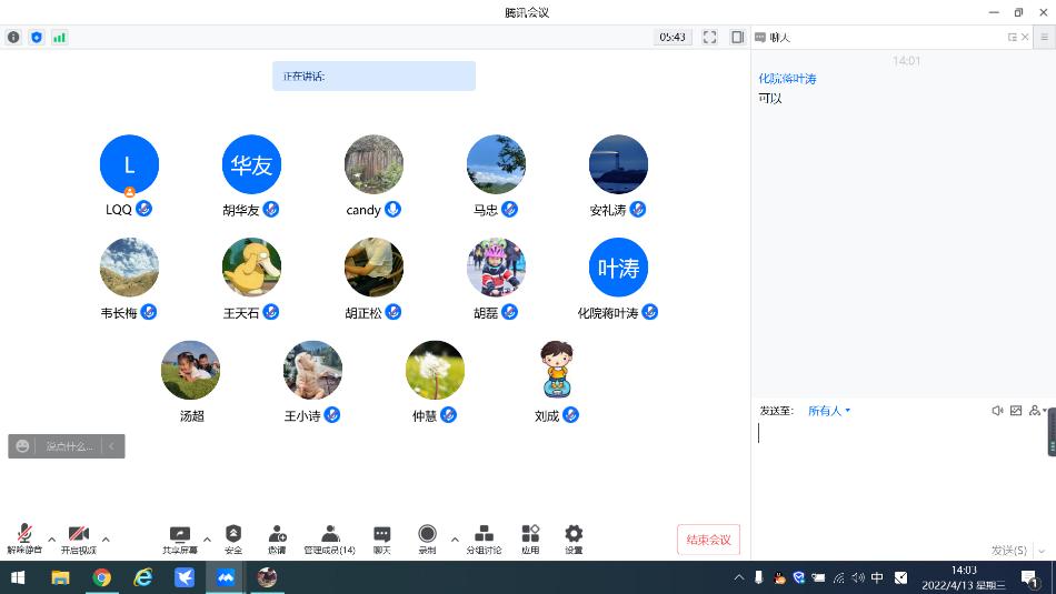 图1:化学、化工、新材和环科四个系分别利用腾讯会议召开教研活动