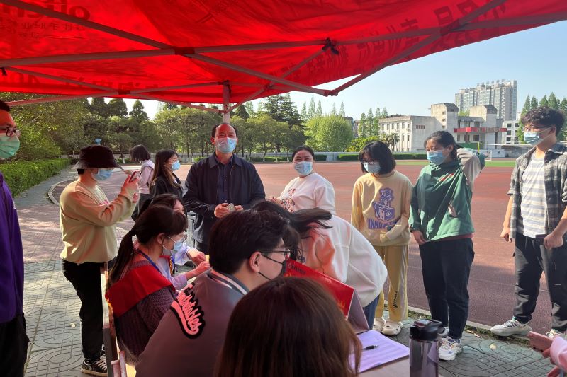 淮师新闻网4月23日电(记者 楚娟 姜雨轩)为进一步强化党员意识,坚定理想信念,牢记宗旨使命,更好地发挥大学生党员在校园疫情防控中的先锋模范作用,经济与管理学院在4月21日开展“党员亮身份抗疫我先行”主题实践活动。经济与管理学院党委书记丁志同、院长张言彩到活动现场指导相关工作。