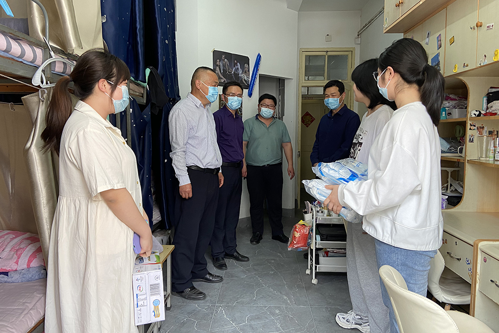 淮师新闻网4月24日电(记者 钱建军 乐伟)4月22日下午,机关第七党支部的后勤管理处、基建处等部门党员中层领导干部与传媒学院党委领导一起深入联系班级学生宿舍走访慰问,了解疫情防控期间学生的学习、生活情况以及思想动态,并为学生送上生活用品和防疫物资,引导学生在疫情期间认真学习、健康生活。