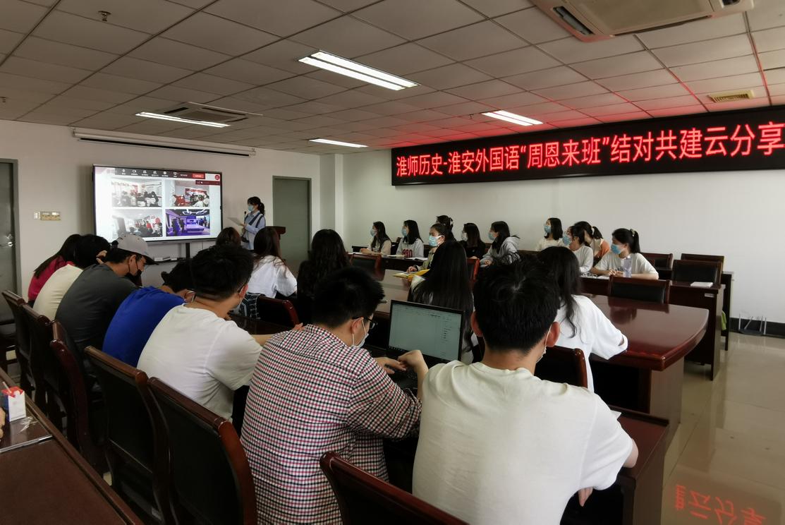 淮师新闻网4月27日电(记者 李璇 林麟)为深化“周恩来班”创建,引导同学们将学习伟人精神与思想引领相结合,坚定理想信念,4月26日下午,永利yl23411no1历史文化旅游学院与淮安外国语学校初一(6)班开展“周恩来班”结对共建云分享活动。淮安外国语学校教学教研处主任、初一(6)班班主任张诚、历史学院团委书记林麟、辅导员纪群和双方创建班级全体学生参加本次活动。