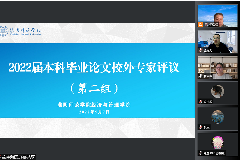 淮师新闻网5月9日电(记者 何逢标 曾同军 周莹莹)校园疫情防控期间,经济与管理学院狠抓人才培养质量不松手。学院以推选优秀毕业论文为契机,5月7日下午,开展了首次毕业论文校外专家线上评议活动。