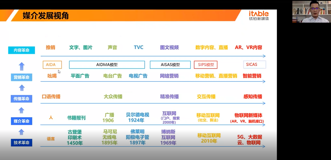 龚铂洋从智媒体时代营销演进、重新理解短视频、正确的理解直播三方面展开,他首先阐述了自己对营销本质的见解,并将技术推动营销革命、媒介革命、营销传播革命作出新的诠释。就定位方面,龚铂洋认为第一步是改变思路,从“怎么做爆款”到“怎么持续”;IP孵化的第一步是赛道选择,并通过具体案例加深听者的印象;短视频故意露出一个破绽,会意外提高视频完播率、复播率。在选题、内容、呈现部分,龚铂洋着重强调要参考经典案例、经典故事模板的重要性和必要性。在正确理解直播方面,龚铂洋表示达人直播和品牌直播的区别,要做好产品、讲解等理念上的划分。
