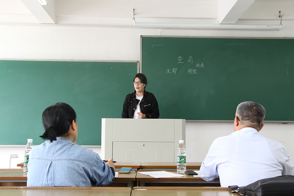 决赛具体流程与江苏省师范生技能大赛基本一致。先由参赛选手现场抽签、抽题,随后前往空教室独立准备一小时。准备结束后,选手前往指定教室进行十分钟的演课。各位选手台风良好、思路清晰,板书设计多样,以独特的教学方式联合生活实际,层层深入地展开教学内容。他们通过诵读法、语境阅读法、问题引导法等,围绕《登高》《荷塘月色》《江城子·密州出猎》等文本,进行合理的教学设计,并以个性化的方式呈现出来。比赛中,选手们展示了他们的教学风采和文本解读能力,充分体现出文学院师范生扎实的基本功。选手们声情并茂的讲解获得了评委的一致称赞。为了进一步提高学生的师范技能水平,评委老师从课堂导入、教学设计、台风台貌、板书设计等多个方面逐一点评,并提出改进意见。