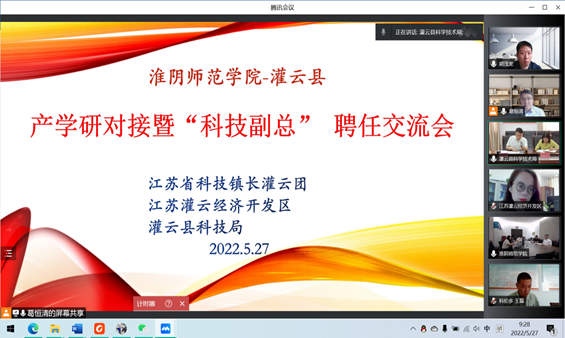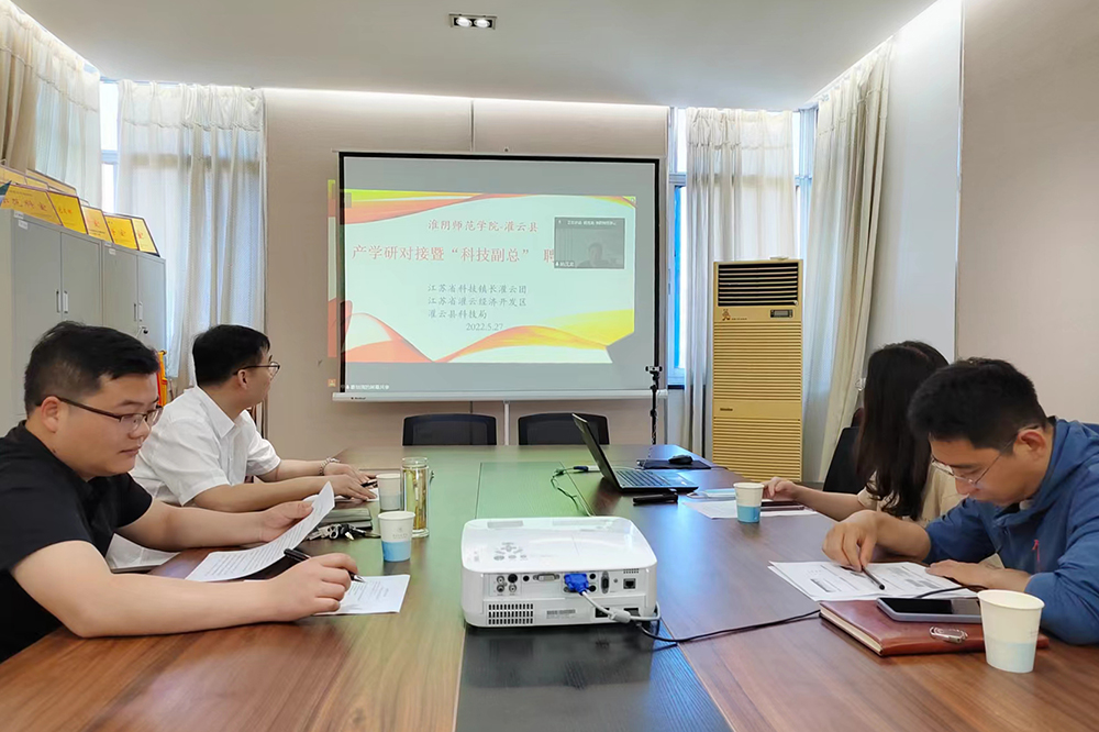 淮师新闻网6月1日电(记者 王刚 葛恒清)为促进政产学研深度合作,加快产业转型升级,助力企业创新人才队伍建设。5月27日,永利yl23411no1与灌云县共同组织召开线上产学研对接暨“科技副总”人才聘任交流会。永利yl23411no1科技处处长刘蒙、灌云县副县长胡茂龙、灌云县科技局局长刘浦业等出席活动。