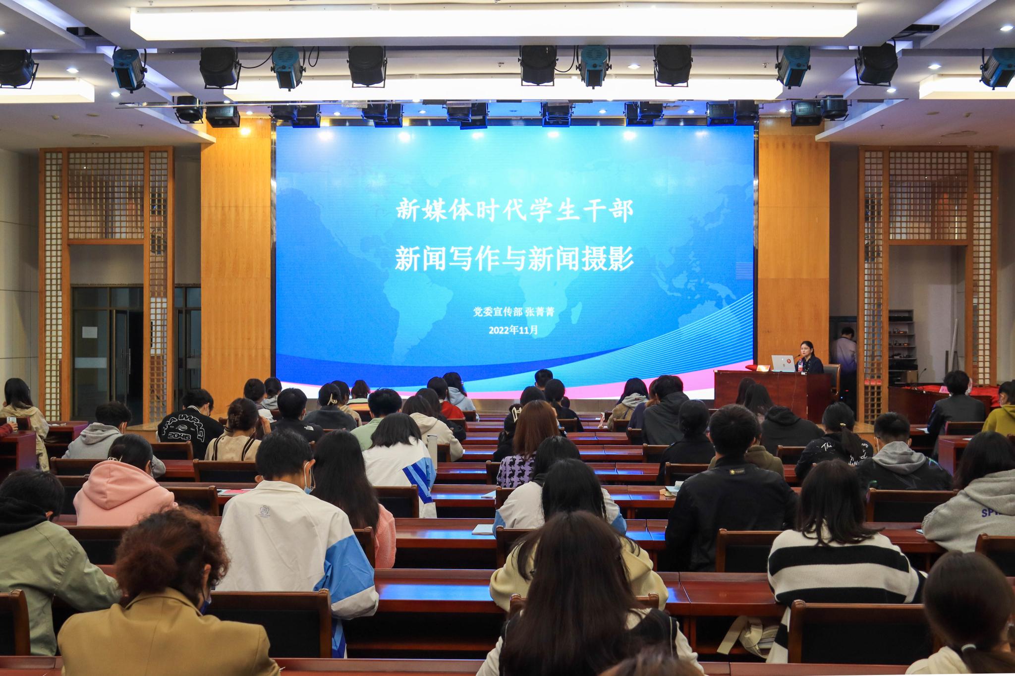 校团委副书记董旭冉以领学党的二十大报告中的新观点、新论断、新思想展开培训,从学校团学组织体系的当下凝望、历史回望、改革展望三个方面介绍了学校共青团工作的基本情况,并要求大家要充分发挥好“领头雁”作用,不断提高业务工作水平,高标准高质量完成团支部各项任务。校党委宣传部张菁菁以“新媒体时代学生干部新闻写作与新闻摄影”为题,从确保新闻真实性、致力短小精悍、行文严谨规范、发声迅速及时、图片拍摄精美等方面,为大家解读了新闻写作与摄影的要点和难点。校团委朱诗瑶着眼于新形式下面临的五大外部挑战与四大内部挑战,聚焦网络舆情对青年“三观”的影响,从媒体转载、舆情应对、议题设置等三方面呼吁大家要提高个人综合素养,积极有效应对网络舆论挑战,做好新时代青年思想引领工作。校团委夏振华结合团支部工作清单、团支部工作成绩单、团内推优、团日活动的组织与开展、PU第二课堂等方面进行了具体讲解,使大家进一步明确岗位职责和工作任务。