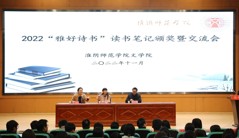 淮师新闻网11月17日电(记者 朱星瑶 黄可涵)为落实文学院“十百千”工程,引领同学们进行“千”部作品的阅读与感悟整理,11月16日晚,文学院在崇文楼音乐报告厅举行“雅好诗书”读书笔记颁奖暨交流会。出席本次活动的嘉宾有文学院院长许芳红,文学院副院长陈年高、杨颖和2022级全体班主任。本次活动由杨颖主持,22级全体同学参加。