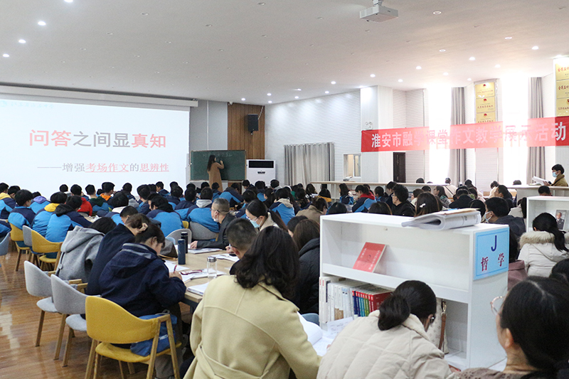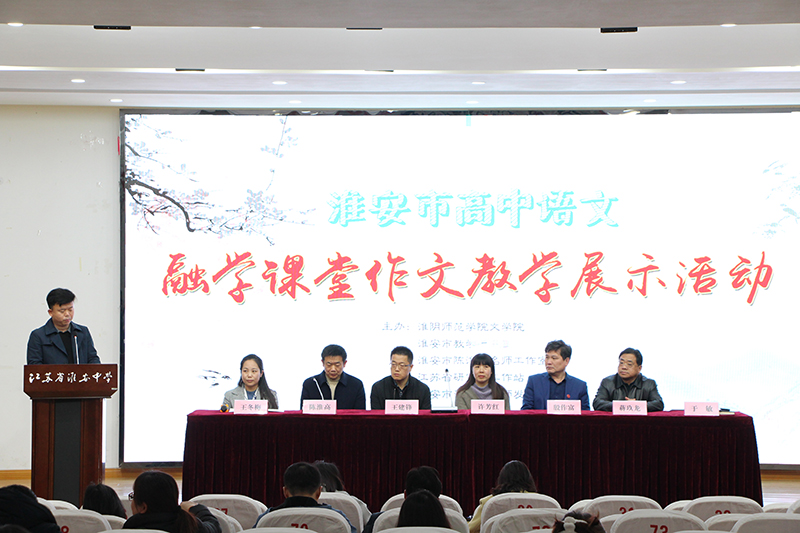淮师新闻网3月29日电(记者 吴灿 詹媛媛)为深入推进“融学课堂”教学改革,转变学科育人方式,3月27日,永利yl23411no1文学院、淮安市教学研究室、淮安市陈淮高名师工作室、江苏省研究生工作站、淮安区教师发展中心、江苏省淮安中学共同承办“高中语文作文教学展示活动”。文学院院长许芳红、文学院辅导员庄超,文学院部分研究生及卓越师范生参与活动。