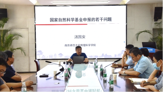 汤国安教授直入主题,结合具体案例分析,从“申报准备与选题”“如何写好申请书”和“其他注意事项”三个方面深度细致剖析如何做好基金申报。他指出,在基金申报前,正确的思想准备和良好的备题意识是基础,要坚持对国内外的研究现状的常态跟踪与凝练。他强调,选题突出科学问题、表达反复推敲和深入领会申报指南的精神是成功的关键。申报论述要有理有据、简明扼要,并从评委的角度,以逆向的思维来分析在申报中要注意的问题。