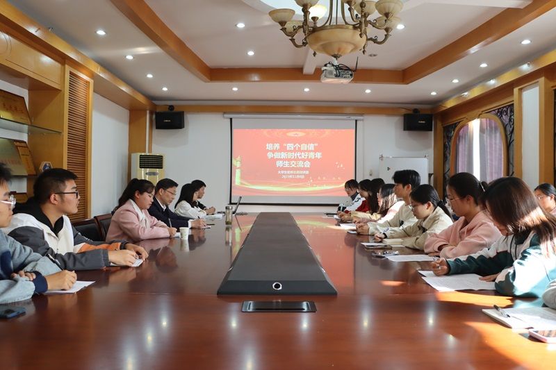 图为校领导与大学生蜜蜂志愿微讲团开展交流活动。记者 杭伶韵 摄